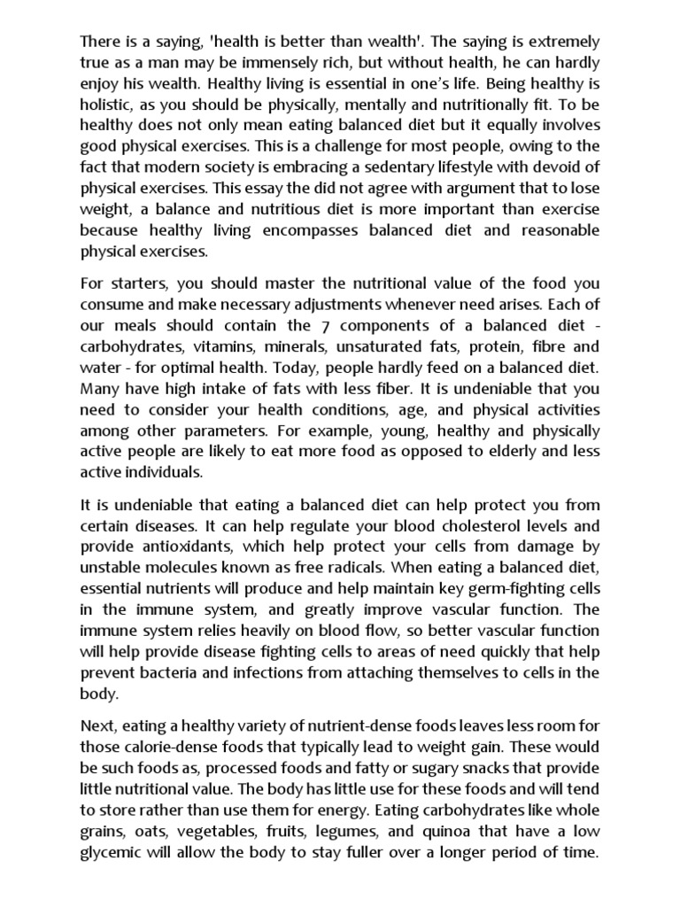 Essay Discussing Balanced Diet English Language Form 5 Spm Thinkswap